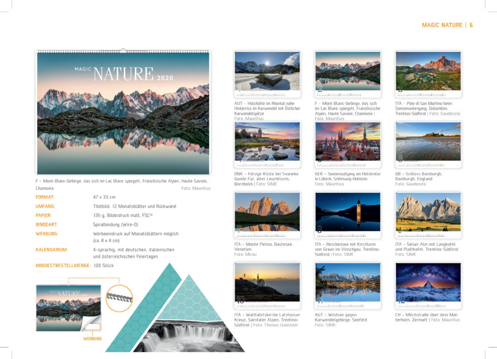 Verleihen Sie Ihrem Kalender eine persönliche Note mit individuellen Fotos, die Ihre Marke und Ihre Produkte ins Rampenlicht setzen.